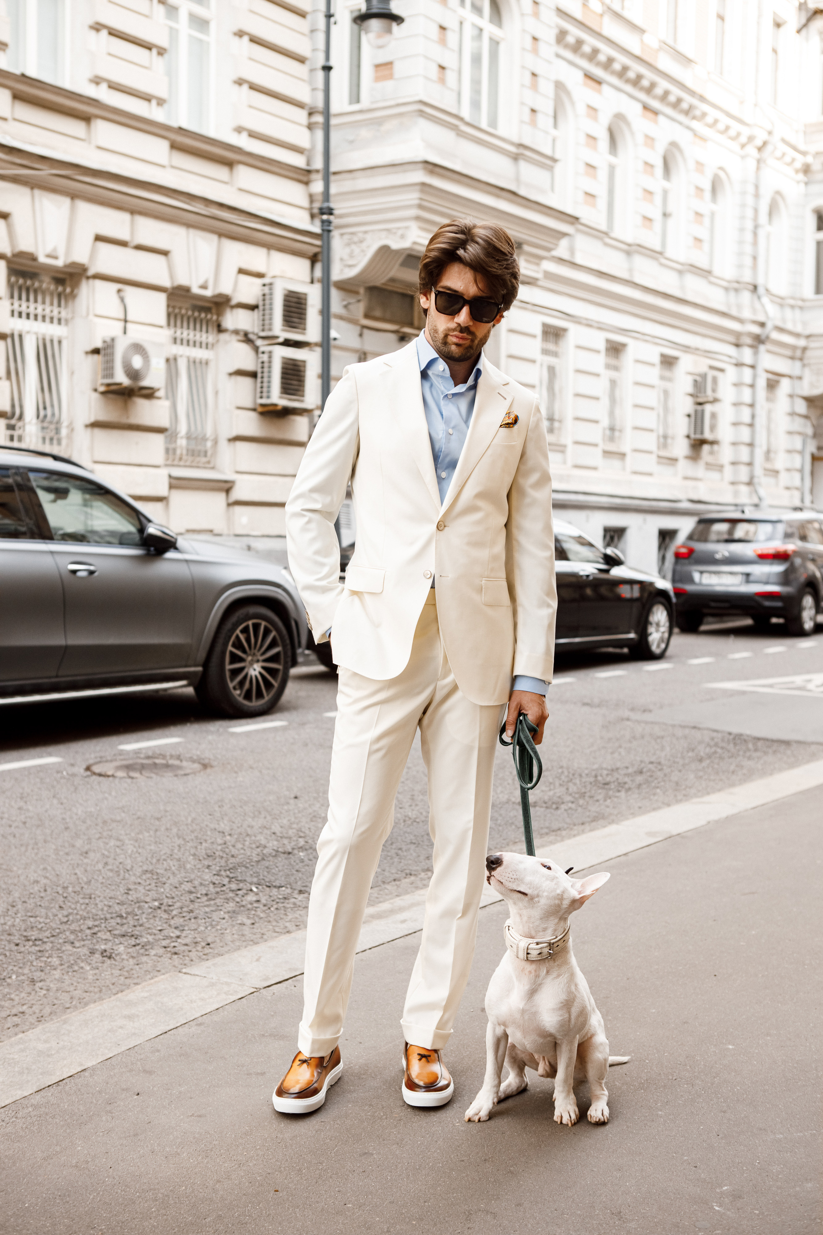 Роскошный костюм в оттенке ivory для Антона Лаврентьева. Магия всегда будет сопровождать вас на улицах города - магнитом притягивать восторженные взгляды прохожих. Не верите? Испытайте на себе!