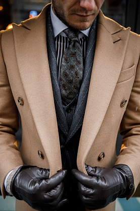 Классическое двубортное пальто песочного оттенка из шерсти мериноса итальянской мануфактуры StylBiella – беспроигрышный вариант, как в составе строгого образа, так и в сочетании с джинсами и трикотажем