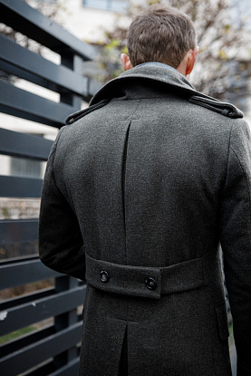 Шинель - форменное пальто, крой которого практически не изменился за 100 лет. А зачем что-то менять, если это эталон мужского стиля: отложные манжеты по низу рукавов, погоны, хлястик, встречная складка и парящая шлица на спине.