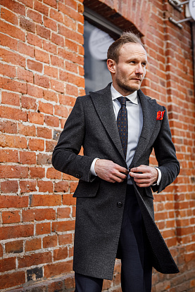 Темно-серое однобортное пальто из роскошного кашемира итальянской мануфактуры StylBiella – носите сольно, или в составе многослойного образа, комбинируя со стеганым жилетом