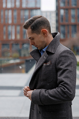 Двубортное пальто «Ольстер» в классической интерпретации из шерсти и кашемира от итальянского бренда Stylbiella. Отложной воротник, накладные карманы, встречная складка на спинке с «парящей» шлицей и манжеты с подворотом. Зачем переосмысливать классику, если её форма уже доведена до совершенства.