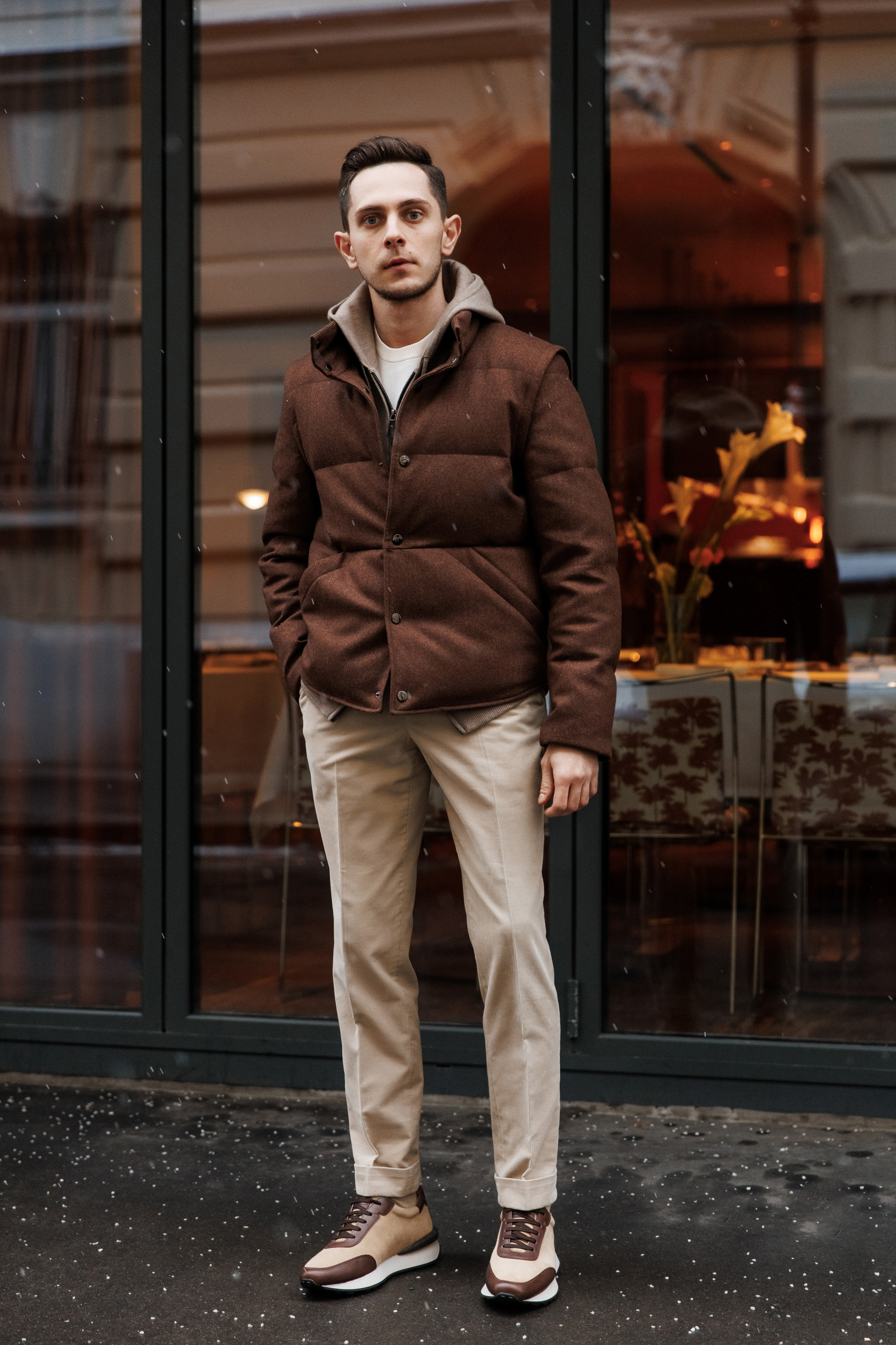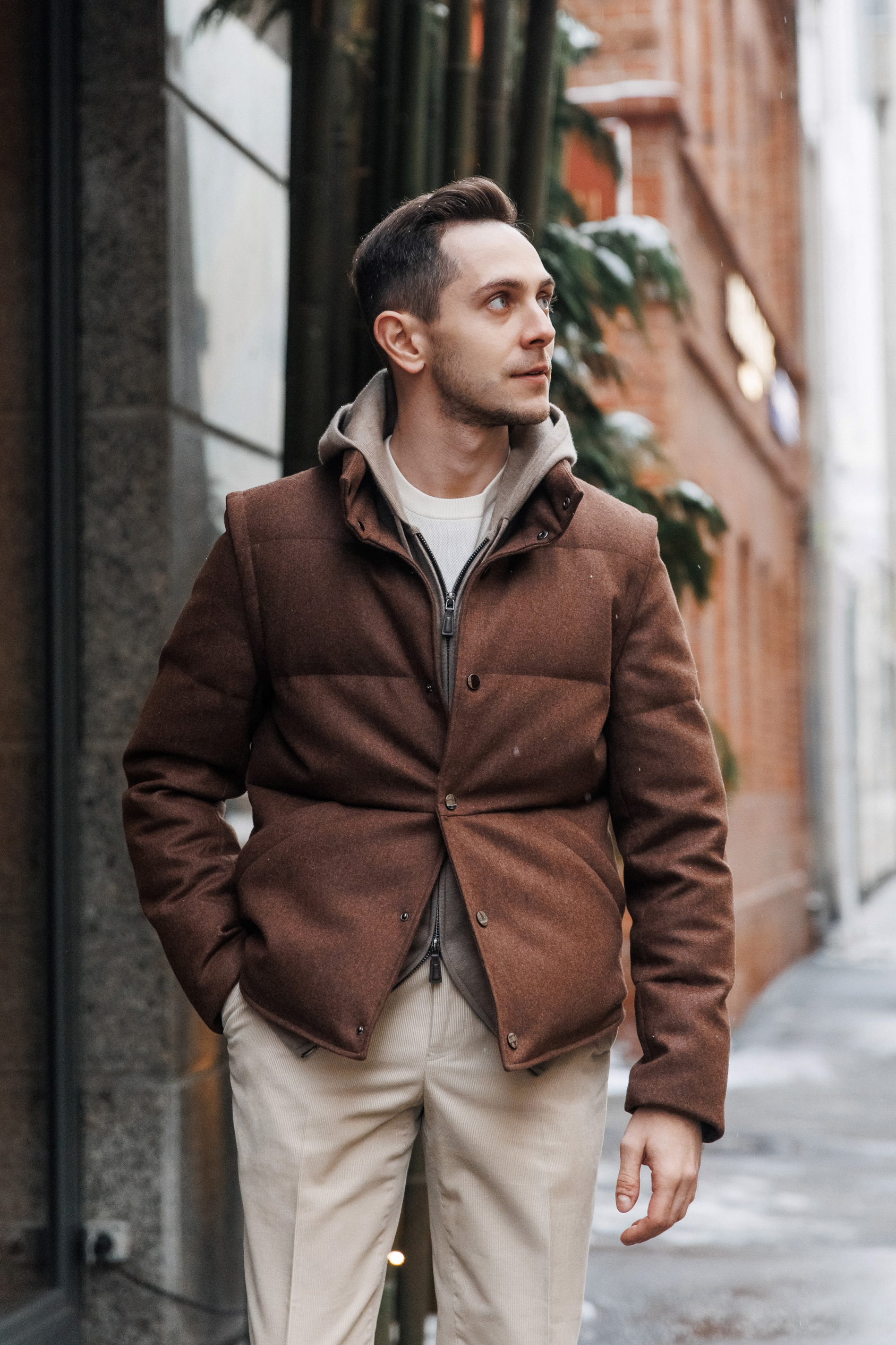 Укороченная куртка с фигурным рубашечным низом из роскошной фланели итальянского бренда Stylbiella. Кнопочная застёжка и возможность трансформации в утеплённый стёганый жилет делают модель функциональной, с выверенным спортивным акцентом – для тех, кто привык быть всегда налегке.