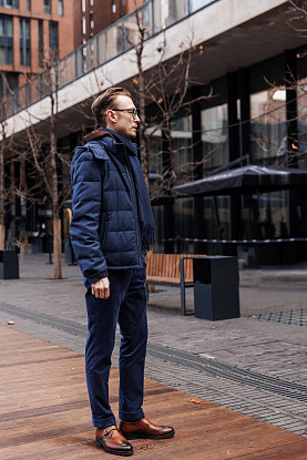 Укороченная куртка из фланели итальянской мануфактуры Drago, легендарной линии Rugby Flannel, с влагоотталкивающей обработкой. Съёмный капюшон, удобные карманы на молнии, регуляторы манжет и тёплый натуральный утеплитель делают модель практичной для городского ритма.
