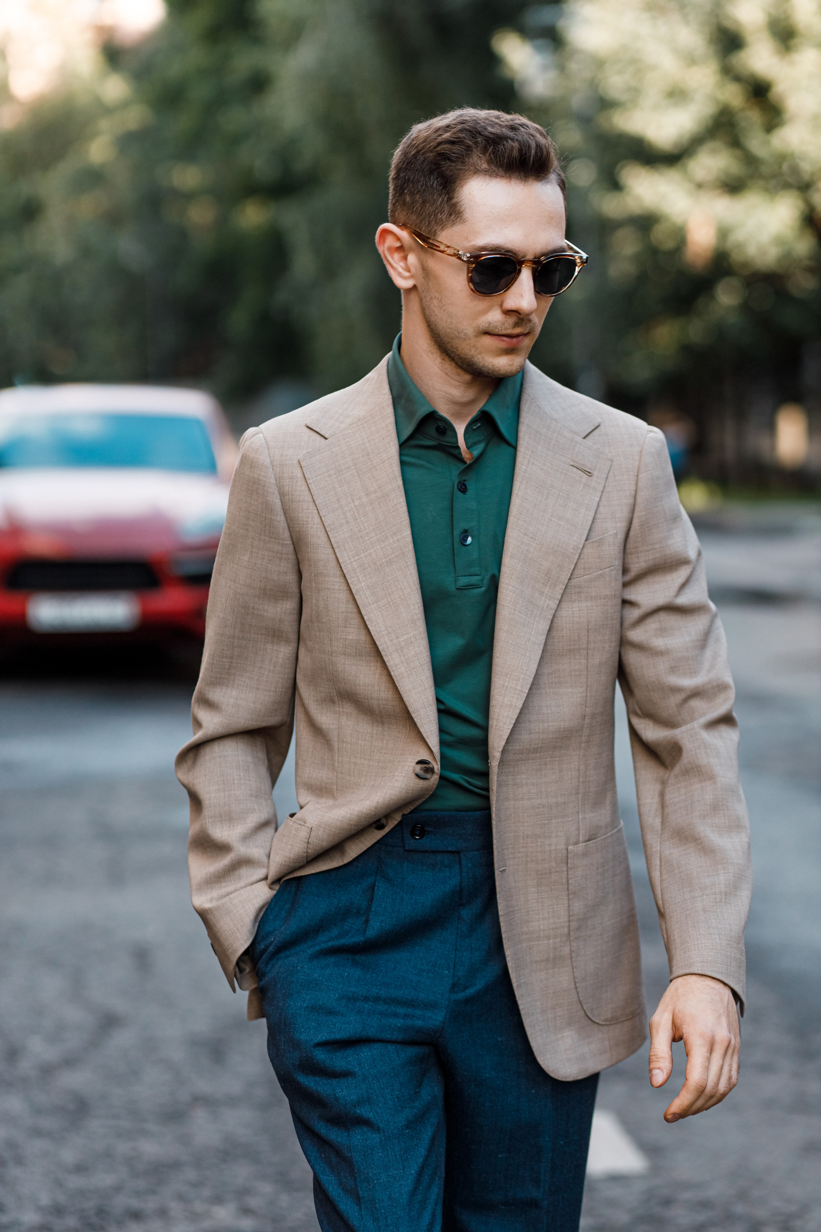 Пиджак из ткани с плетением hopsack от итальянской мануфактуры Drago. Открытая фактура материала пропускает воздух и держит форму, сохраняя силуэт и нужный уровень формальности даже в жару. Сочетайте с льняными брюками и поло – образ для города и не самых формальных встреч в офисе в конце рабочей недели.