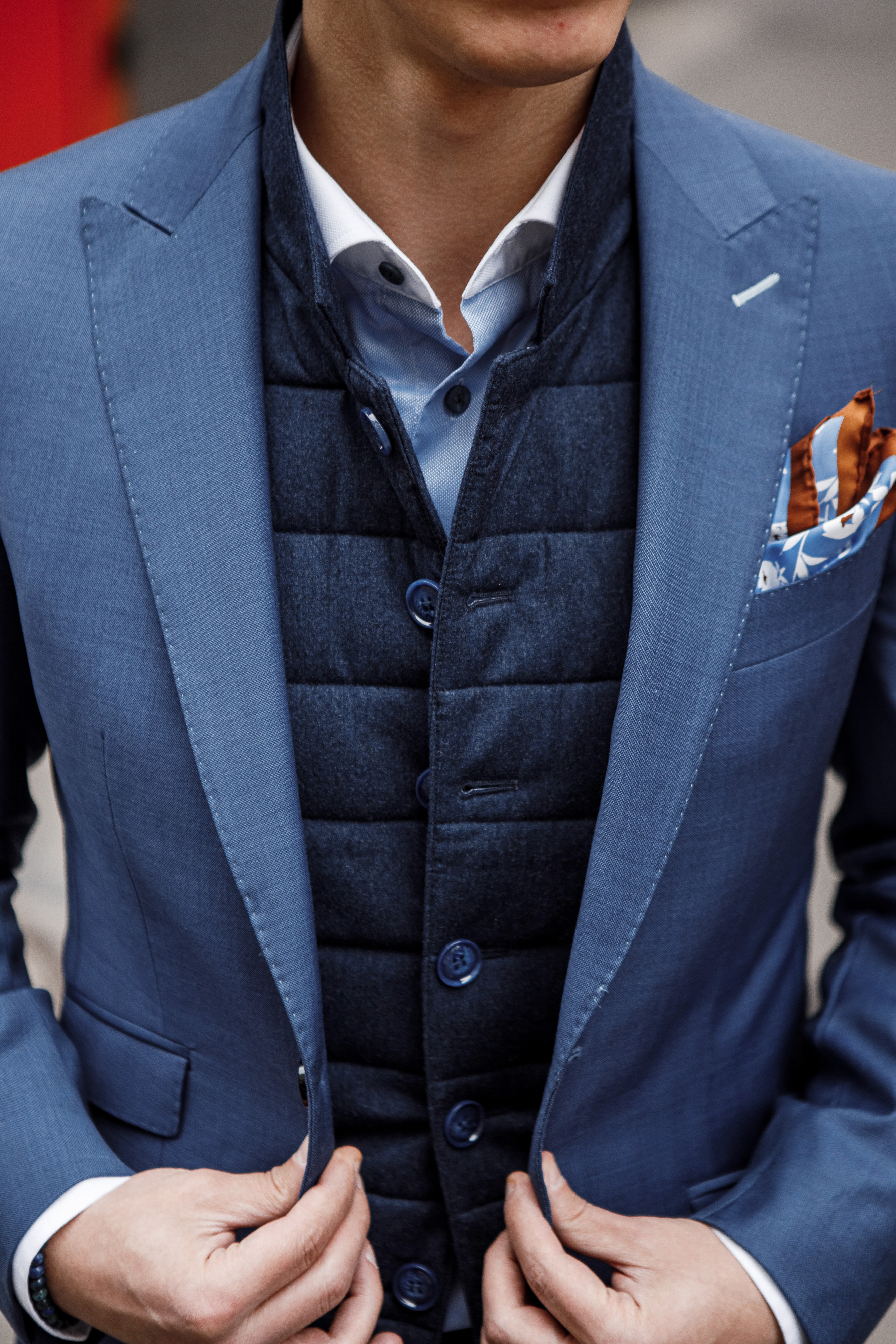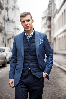 Легкий стеганый жилет с отложным воротником, скрытыми в рельефе карманами и изящным хлястиком на спинке. Он идеально сочетается с пиджаком и может служить самостоятельным верхним слоем.
