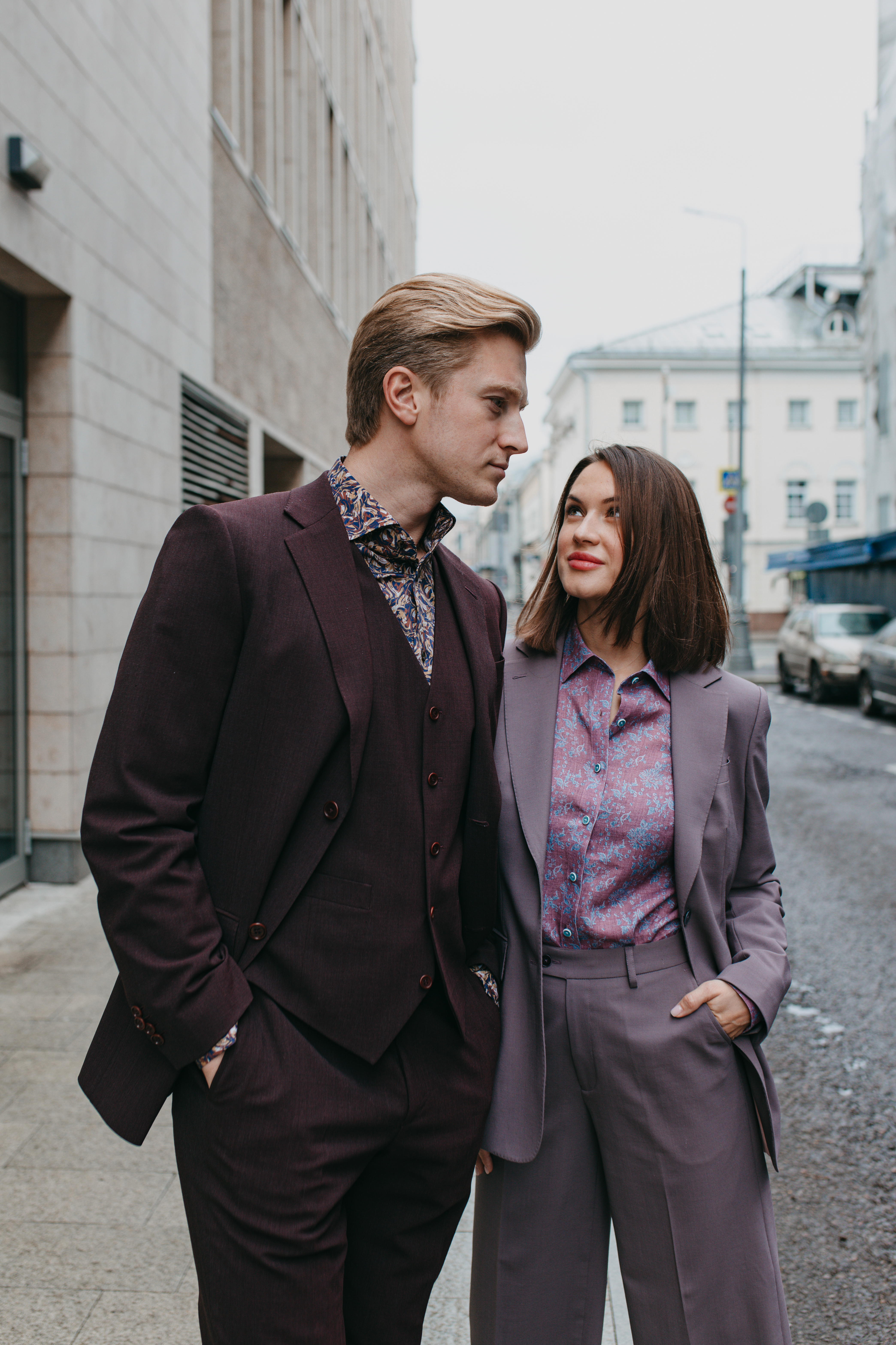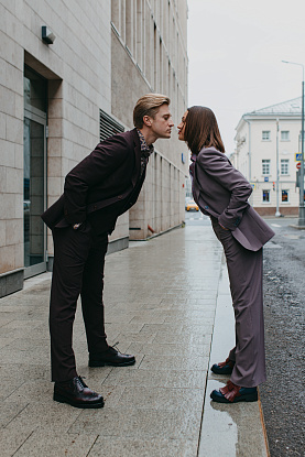 Семейный образ для Вячеслава и Екатерины Чепуренко. Костюм неинтенсивного сиреневого оттенка из роскошной шерсти итальянской мануфактуры StylBiella. Изящный жакет с широкими брюками палаццо, блузка из тончайшего хлопка – ничего лишнего, только стиль!